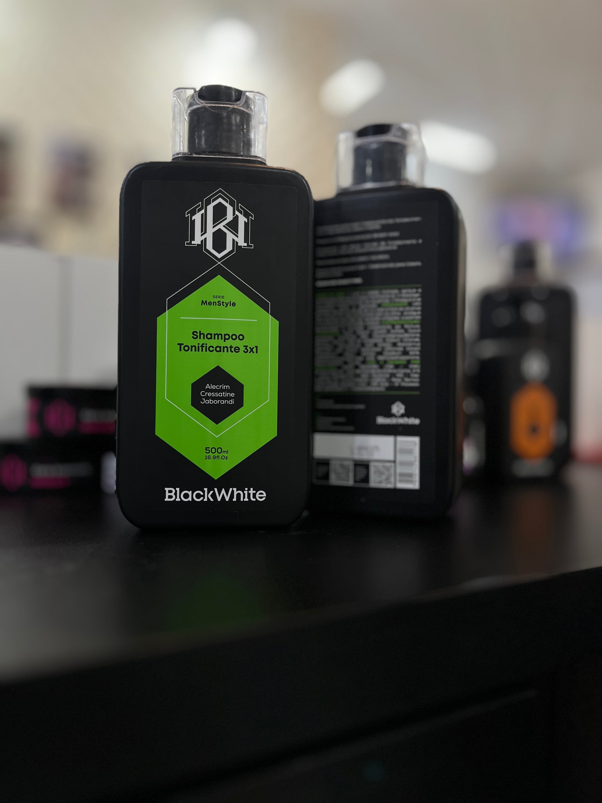 O Shampoo Tonificante 3x1 BlackWhite combina praticidade e cuidado diário. Com mentol, alecrim e castanha da Índia, limpa profundamente, reduz a oleosidade e proporciona uma sensação refrescante imediata. Pode ser usado no cabelo, barba e corpo, tornando a rotina muito mais simples e eficiente.